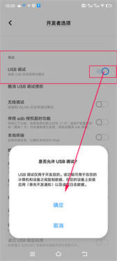 4、在其中找到“调试”子栏目,勾选打开其中的“usb调试”
