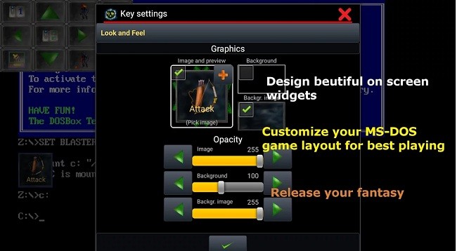 dos模拟器app是一个游戏助手软件,软件中的功能可以帮助用户在手机上玩dos游戏,软件中可以直接帮助用户修复游戏画质,主页面也十分简洁,只要打开软件就能体验儿童时期的经典游戏,可以根据自己的需求来调整图片尺寸,手机就能代替手柄进行操作,有需要的可以下载体验。