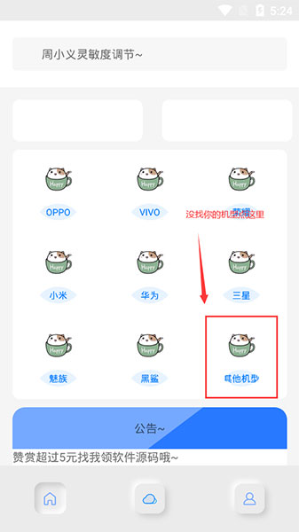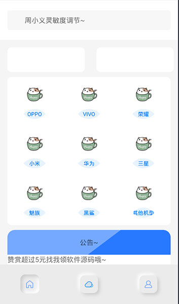 1、打开周小义灵敏度软件,简单清新,有常见的机型都可以进行调节;