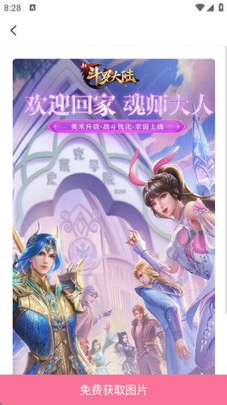 3、打开壁纸详情页面后,用户可以随时点击免费获取按钮,将喜欢的图片保存到本地。