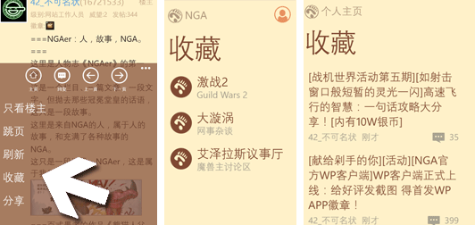 想要回味昨晚大漩涡中的精彩帖子却怎么也翻不到?别把遗憾留到冲水之后!NGA APP新增完善的帖子收藏功能,精彩帖子随手收藏,总有机会细细回味。 这一功能对版面也同样有用。每天都要翻动版面列表是否觉得厌烦?只需轻轻一点就能把版面加入收藏列表,让你打开APP第一时间直奔主题,时间就是金钱,我的朋友!