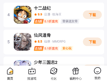 游小福手游平台官网是一款全新的游戏社区平台,在这里你可以享受0.1折的游戏福利内容,海量游戏充值0.1元就能享受大佬体验,满足你的所有游戏需求,带给你超多的优质服务新功能,打造舒适的顶级服务新挑战,满足你的所有游戏需求,超多好玩的游戏内容等你来解锁,打造不一样的精彩游戏新时代。让你在游小福手游平台官网花更少的钱获得更多的奖励。