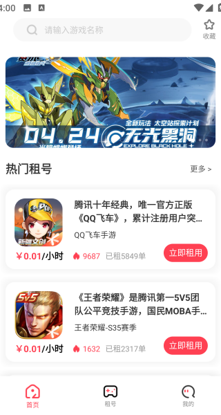 极游社app是一款极具性价比的游戏账号租赁平台,超多游戏账号任你挑选,热门手游、端游应有尽有。各种顶级账号这里全都有,想要体验当大佬的快感,这款软件都能轻松帮你实现。租赁方式灵活多样,按小时、按天、按周随心选,满足不同游玩需求。平台对出租账号严格审核,账号等级、装备、道具真实可靠,让你毫无后顾之忧。