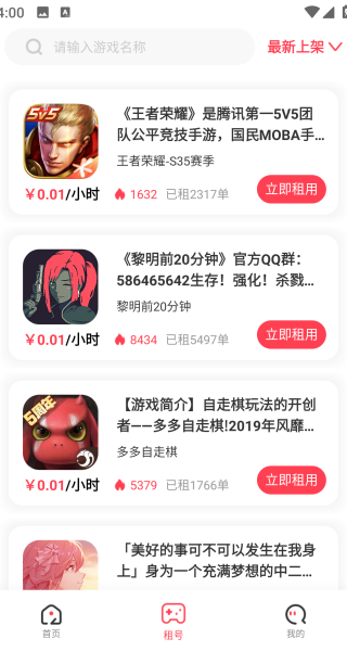 2、支持续租功能,租赁到期前可便捷续租,延长游戏畅玩时间,无需重新寻找账号;