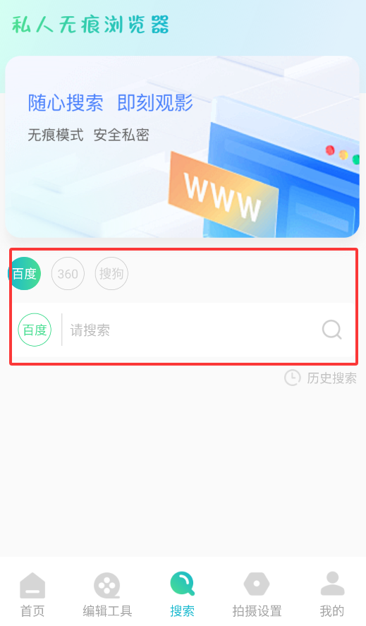 3、在搜索栏中,可通过内置的多款搜索引擎快速查找网络上的影视资源。