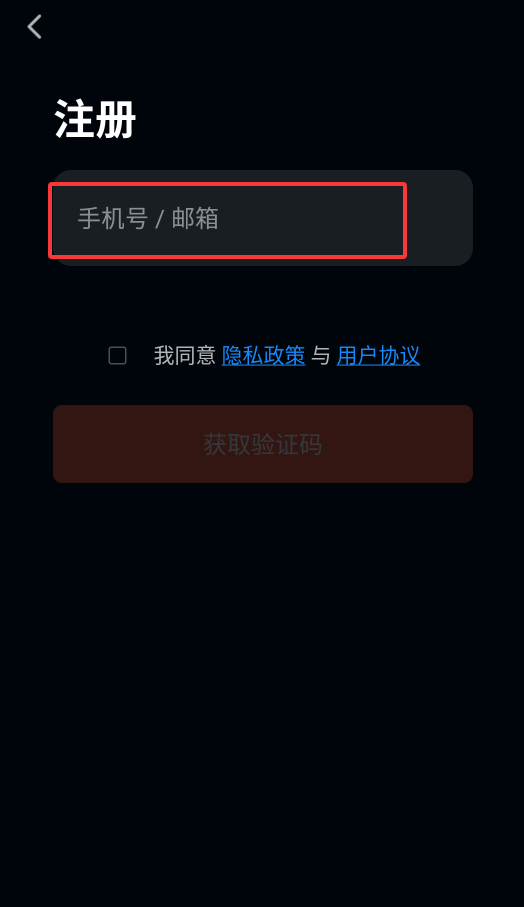 2、在登录界面底部选择"注册账号"选项,进入手机号注册流程。