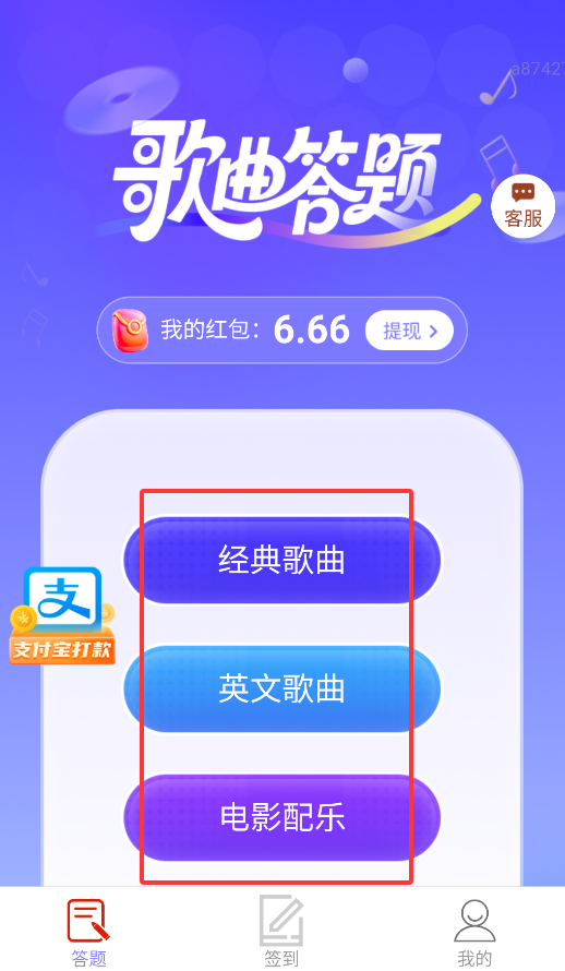 祥运点点这个猜歌赚钱的APP挺有意思的,主要靠听歌猜名字赚红包。各种类型的歌都有,中文的、英文的、影视金曲都能玩。每天做做任务还能多赚点,虽然钱不多但玩着挺上瘾的。喜欢听歌的可以试试,反正闲着也是闲着。