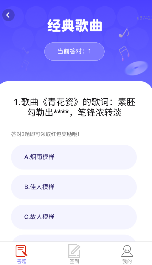 3、系统播放歌曲片段后,在限定时间内选择正确答案即可累积得分。