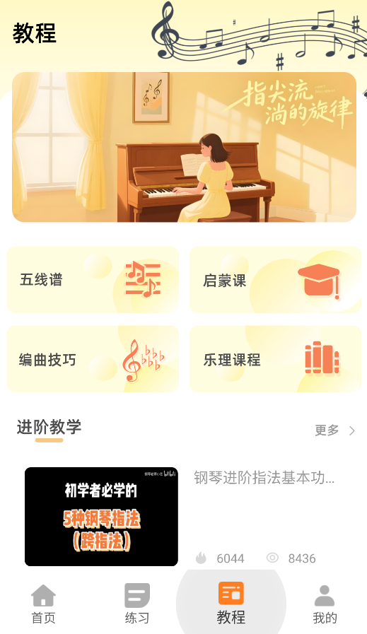 2、分阶段课程体系科学系统完整,从基础音阶练习到完整曲目演奏循序渐进设置,适合不同水平阶段的学习者使用体验。