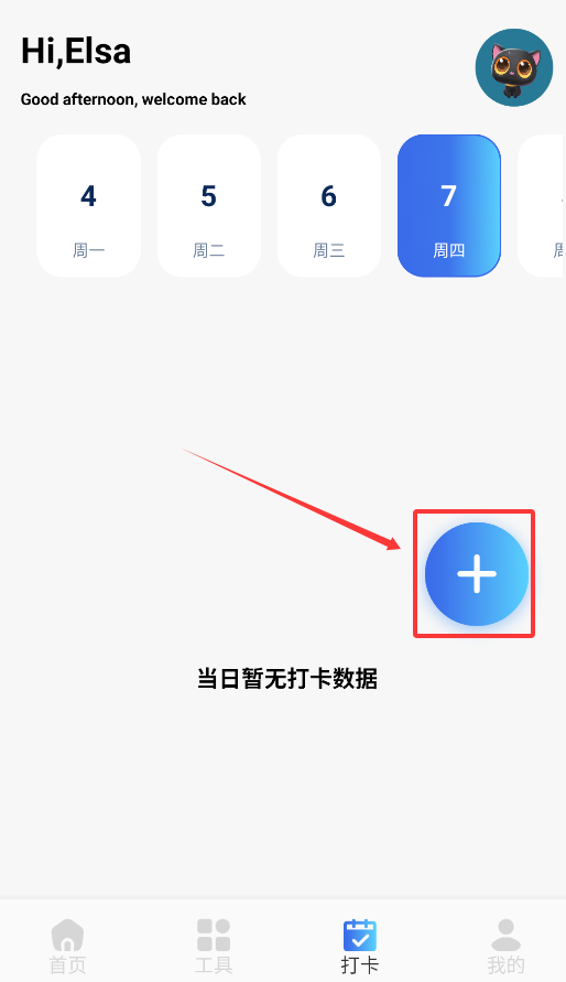 4、在打卡页面,点击右下角"+"号按钮即可创建新的打卡任务,支持自定义打卡内容和提醒设置。
