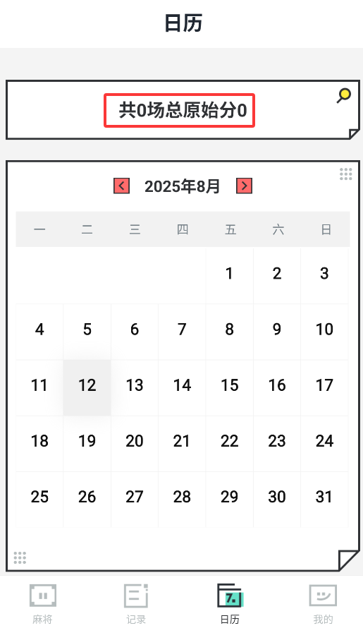 4、日历视图模式可按日期查看每日对局场次和原始得分记录,方便复盘分析牌技进步情况。