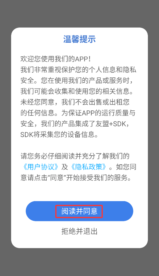 1、首次启动APP会弹出用户协议,点击"同意"后即可进入翻译工具主界面。
