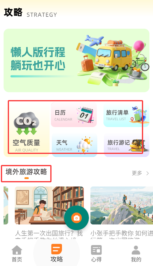 3、攻略板块集成空气质量查询、日历规划、旅行清单、实时天气及境外旅游攻略库。