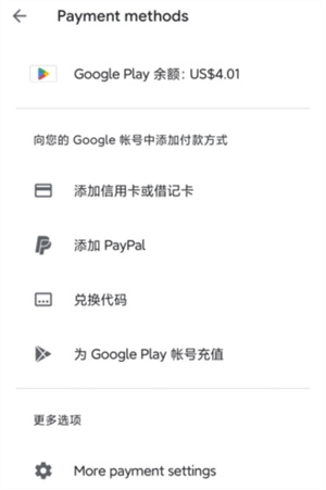 2、这里就可以看到自己的余额,下面是添加付款方式的功能。