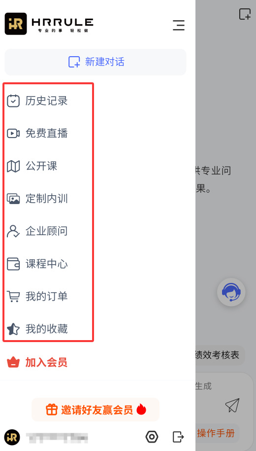 3、侧边栏菜单提供历史记录查询、免费直播课程、公开课及企业顾问服务入口。