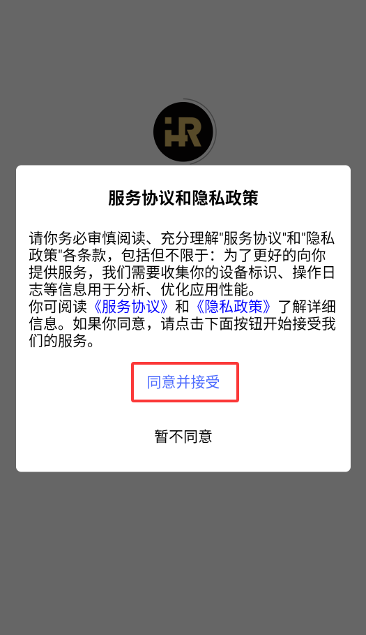 1、首次启动APP会弹出用户协议,点击"同意"后即可进入智能咨询平台。