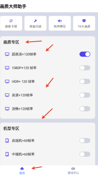 2、在首页之中可以根据不同的画质来进行调整帧率,确保画面的清晰度;