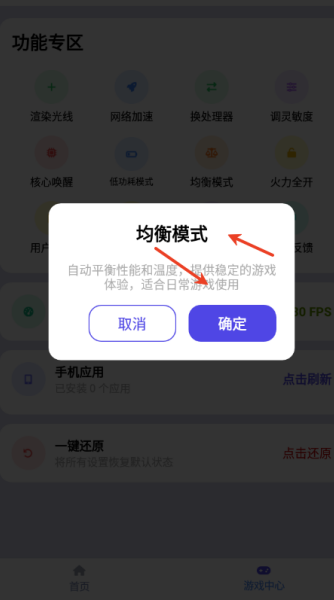 2、提供多种设备运行模式,如低功耗模式、均衡模式、火力全开等,用户可根据设备电量和游戏需求灵活切换,平衡性能与功耗。
