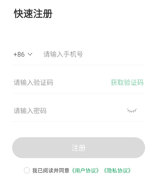 4、输入对应的手机号,获取验证码后设置自己的密码,等待注册成功后即可登录。