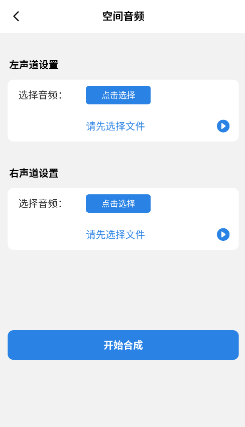 3、进入"声道设置"可分别调整左右声道的音量平衡,确认后点击"开始合成"完成音频混合。