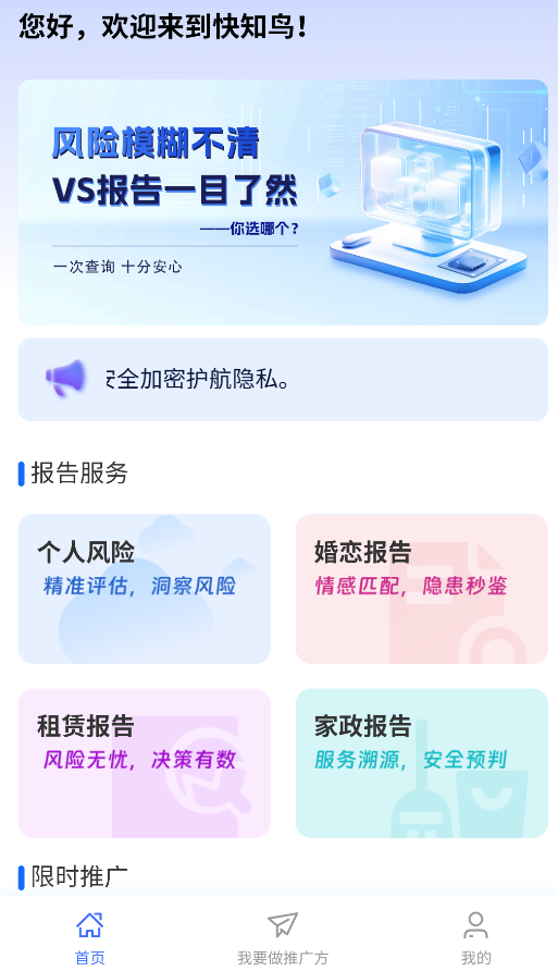 快知鸟APP主要做数据推广的,能查不少行业数据。推广商品挺方便的,拉好友一起做还能多赚点。收益明细写得清楚,提现也快。想做副业推广的朋友可以试试,用手机就能操作,挺省事的,快点下载一个试试吧。