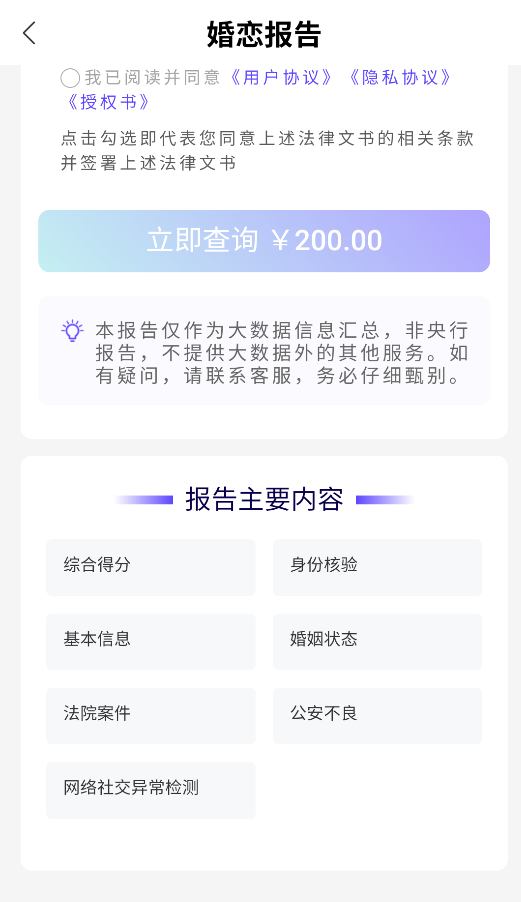 3、通过"婚恋报告"服务可获取对方婚姻状况核实、身份真实性验证及综合匹配度评分等关键信息。