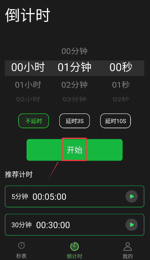 3、切换到"倒计时"模式,可自定义设置倒计时间(精确到秒),一键启动倒计时提醒功能。