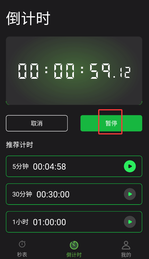 4、倒计时过程中可随时暂停或取消计时,操作简单便捷。