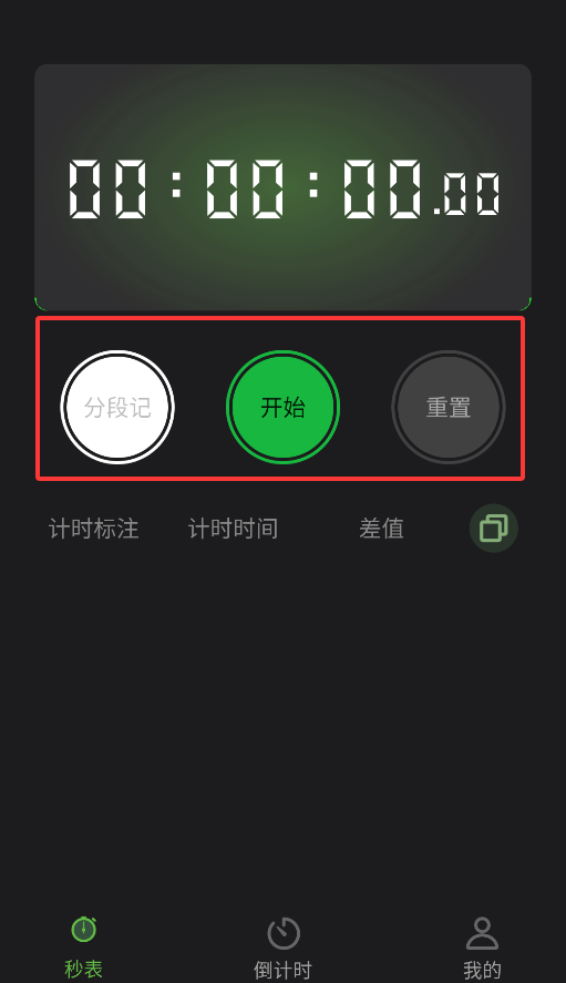 1、启动APP后进入"秒表计时"功能,点击开始按钮即可精确计时,支持添加分段标记记录关键时间点。