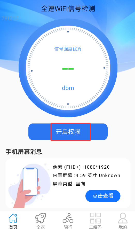2、首页支持一键检测当前WiFi信号强度,需授权位置和网络访问权限获取准确数据。