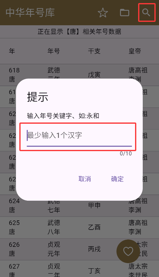 4、点击顶部搜索图标,输入具体年号(如"永乐""开元")即可精准查询对应朝代及历史背景。