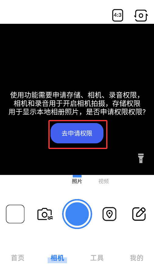3、使用相机功能前,需在权限管理中允许APP访问摄像头,否则无法正常拍照或录制视频。