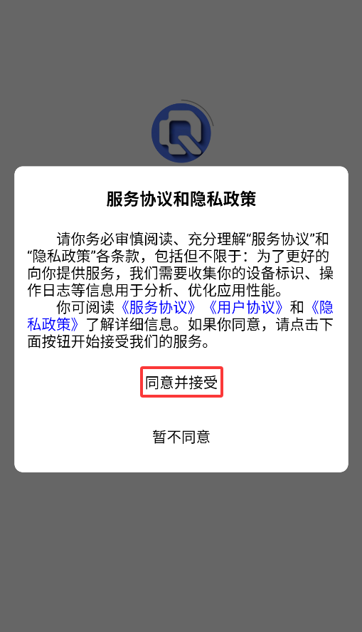1、首次启动APP会弹出用户协议,点击"同意"后即可进入AI助手平台主界面。