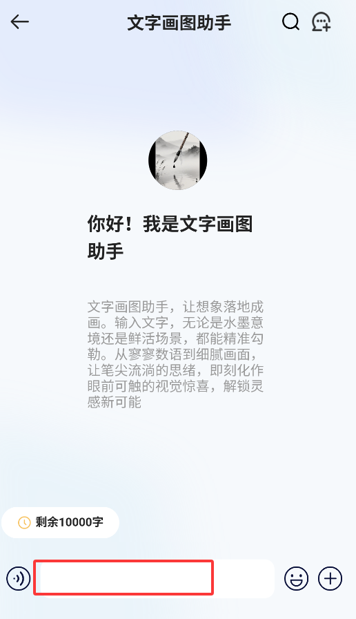 3、以"文字画图助手"为例,在输入框描述你的创作需求(如"我该怎么画"),点击生成按钮。
