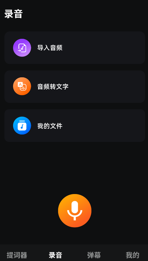 3、进入"录音与转写"界面,支持导入外部音频文件或实时录音转文字,方便快速生成台词文本。