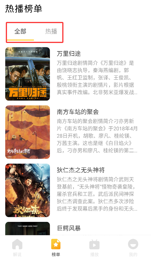 3、榜单专区包含"全部内容"和"热播排行"两个分类,方便用户发现热门影视资源。