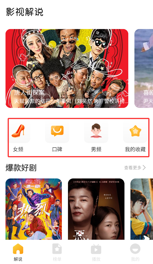 2、影视分类区提供女频剧集、口碑佳作、男频内容和我的收藏四大板块。