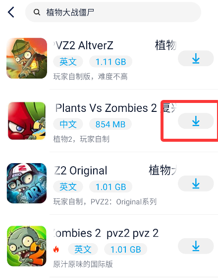 3、在获取到对应的搜索结果以后,点击自己想要下载的植物大战僵尸游戏客户端。