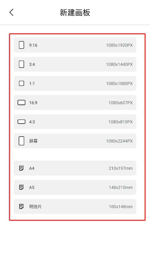 1、新建画布流程:选择预设尺寸或自定义分辨率。支持横向/纵向画布切换,满足不同创作需求。