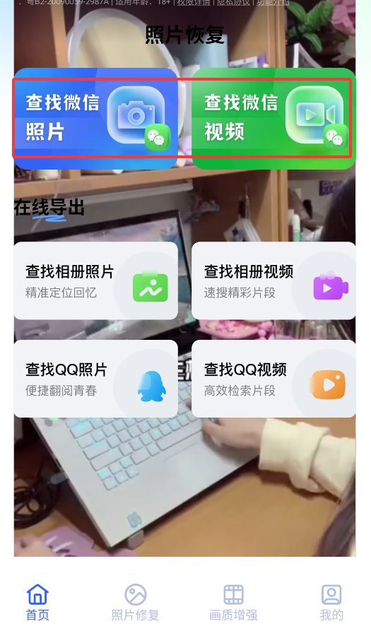 2、首页支持扫描微信存储的图片/视频文件,检测模糊/破损文件并提供在线导出功能。