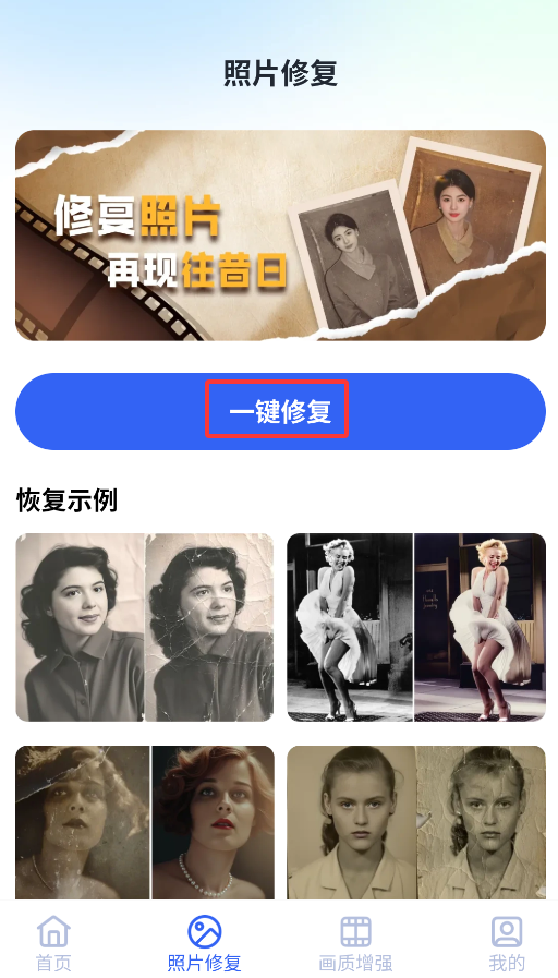 1、该应用通过先进的AI修复技术,让普通用户也能轻松完成专业级的照片修复与画质增强工作。