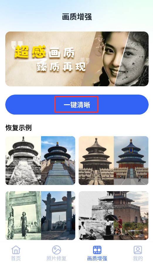 4、画质增强模块采用AI超分辨率技术,可一键提升照片清晰度并智能补全缺失细节。
