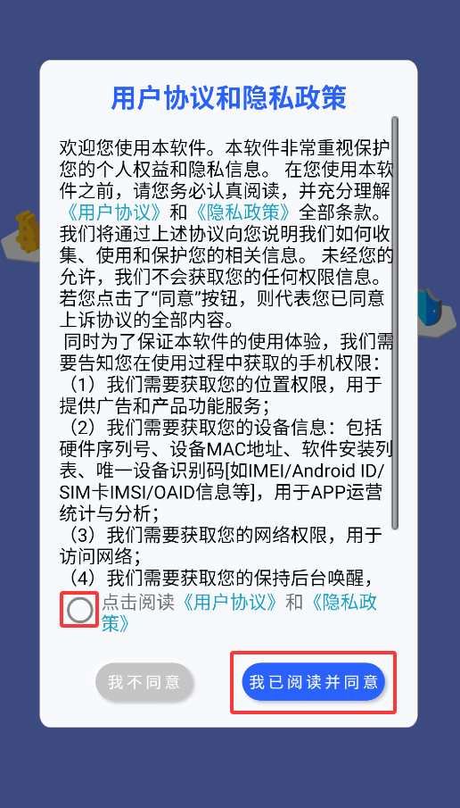 1、首次启动APP会弹出用户协议,点击"同意"后即可进入多功能计算平台主界面。