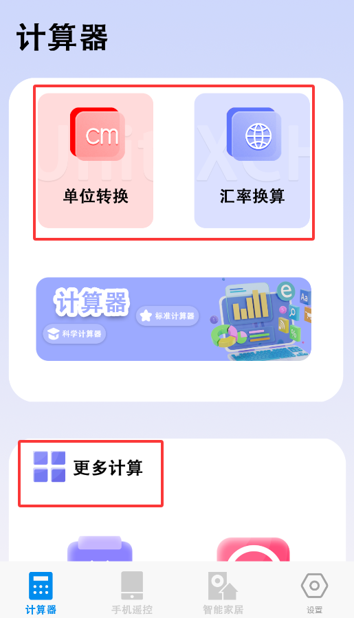 1、打开应用后选择需要的计算模式,如标准、科学计算器,或进入货币、单位换算等功能界面。