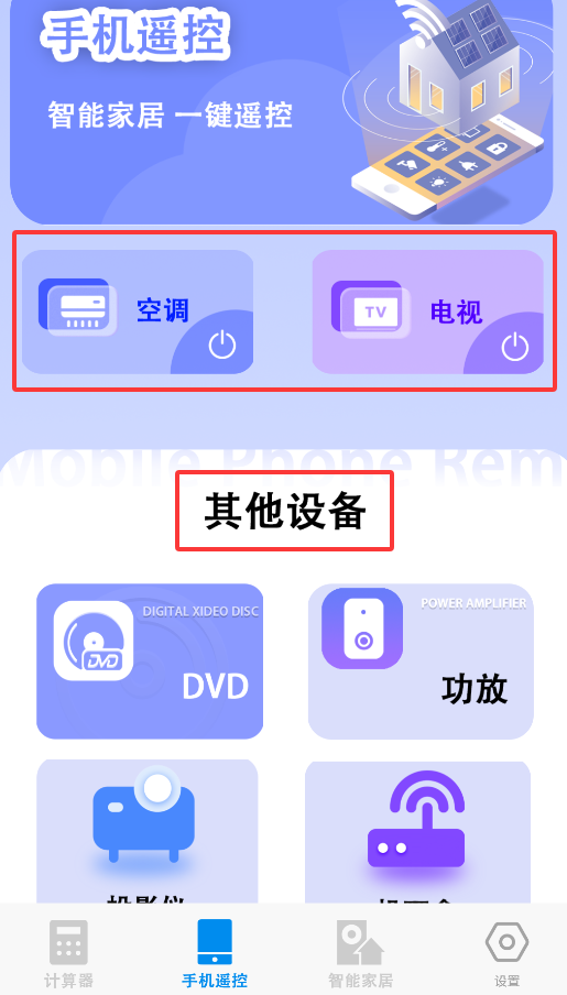 4、通过“遥控器”功能配对智能家电设备,可将手机作为通用遥控器,控制支持红外或Wi-Fi的家电产品。