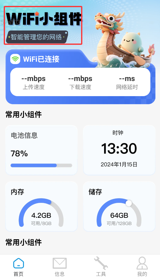 2、首页提供WiFi智能管理功能,支持一键优化网络设置,提升连接速度和稳定性。