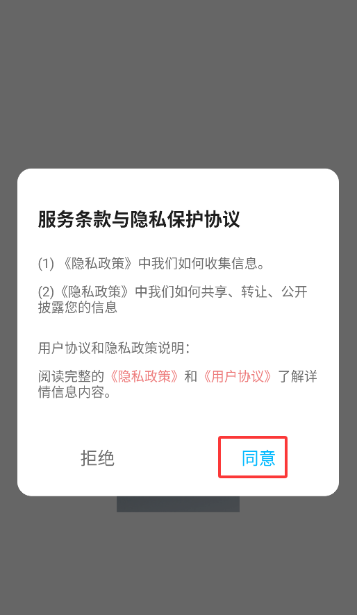 1、首次启动应用会显示用户协议页面,点击"同意"按钮后即可进入文件传输主界面。