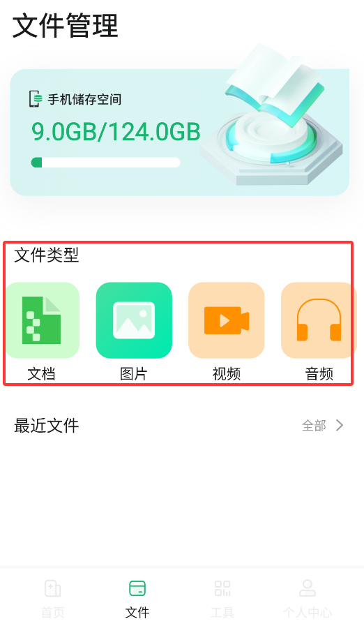 3、文件管理中心分类管理文档、相册、影音等资料,便于查找和批量操作。