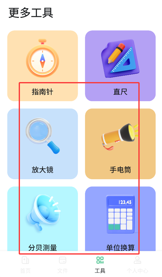 4、实用工具区集成测量仪器和辅助工具,包含方位检测、放大观察等功能模块。