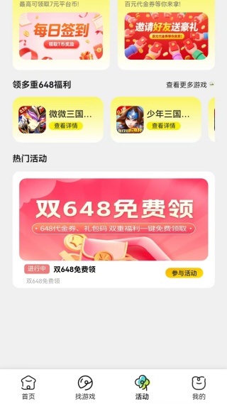3、专门的活动板块,方便用户每日签到,邀请好友送豪礼,还能领取各种游戏福利。